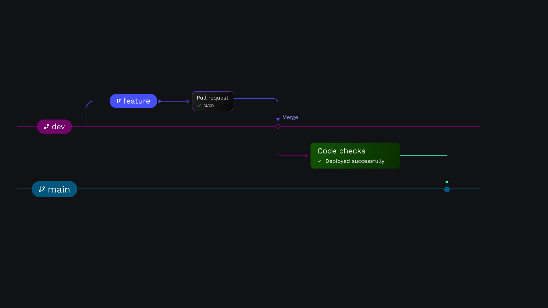 The idea here is that main = production the state of main is generally the state of production. So you may even set up your CI to automatically release anything that get’s merged into main.